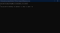 Added a Calculator option, with 5 operations and an option to return to the main menu. I've also made it so you cannot divide by zero. Next update should be an optimization/graphical one...